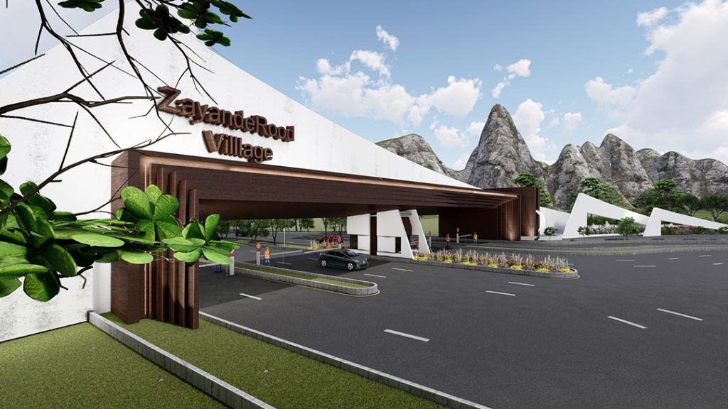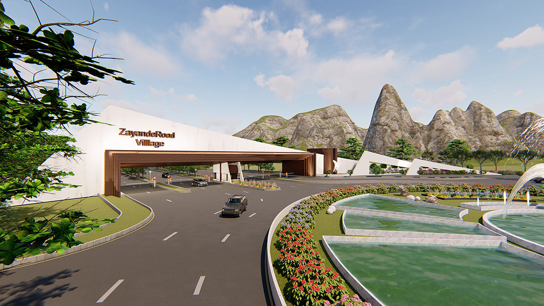 پروژه المان سردر دهکده زاینده رود با زیربنای طراحی 18000 مترمربع در شهر چادگان استان اصفهان در زمینی به مساحت18000 مترمربع با هدف یک المان ورودی و نگهبانی طراحی فاز یک و دو گردید .