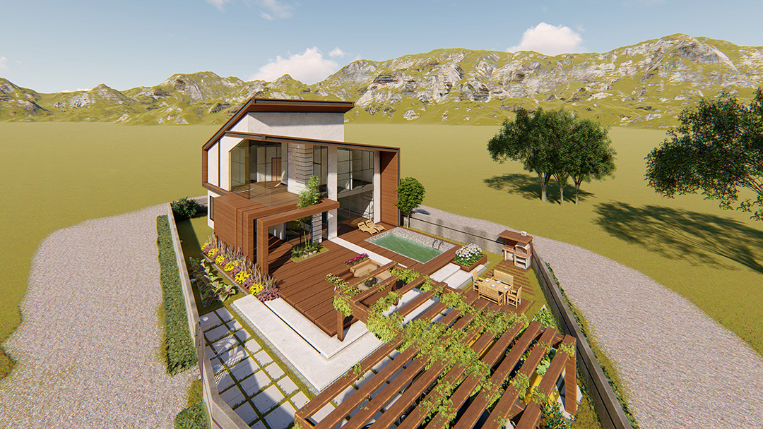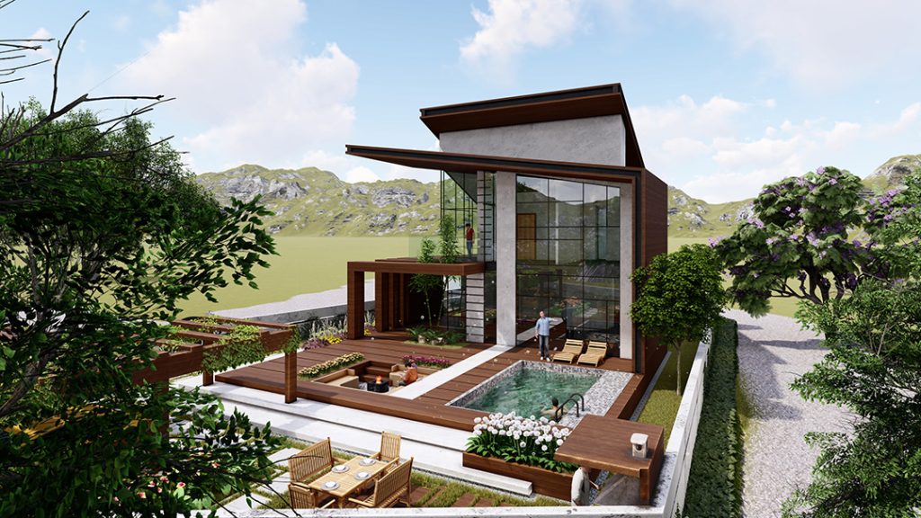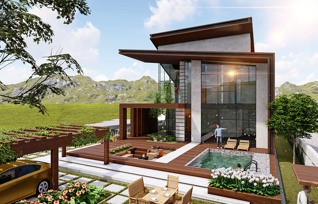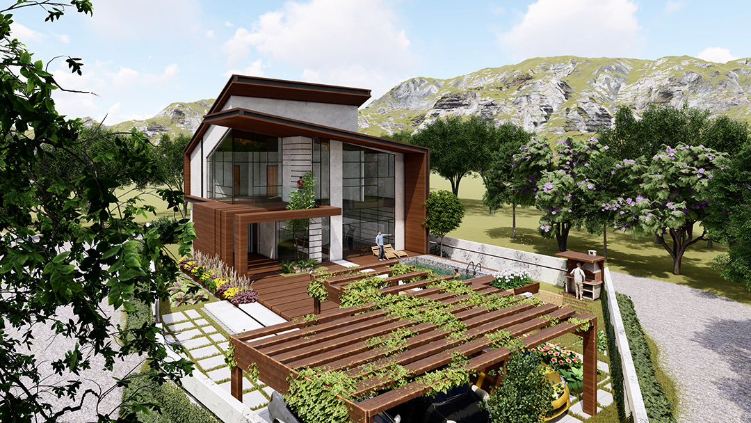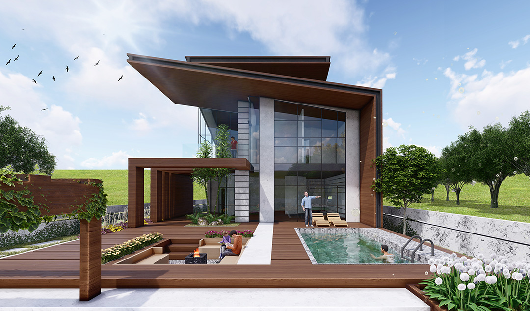 پروژه باغ ویلا زرباف با زیربنای طراحی 350 مترمربع در شهر اَسالم استان گیلان در زمینی به مساحت